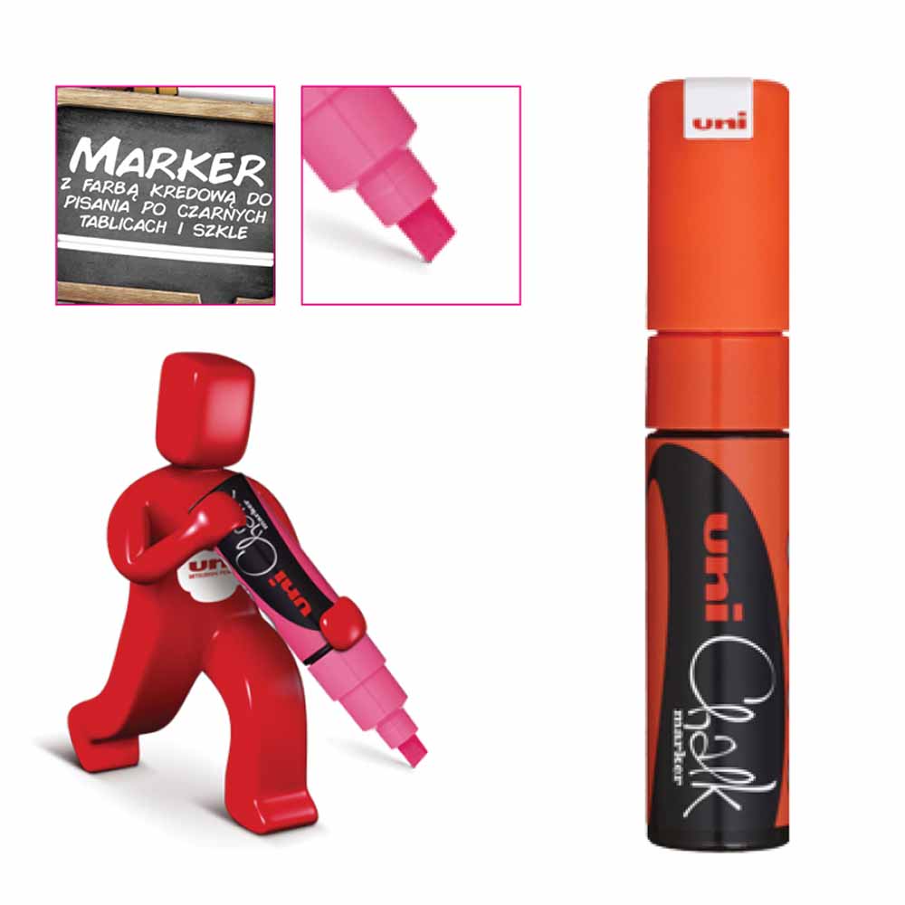 Marker kredowy UNI PWE8K w kolorze czerwonym to profesjonalne narzędzie idealne do pisania i malowania na tablicach oraz szkle. Jego wszechstronność sprawia, że jest niezastąpiony w wielu zastosowaniach.