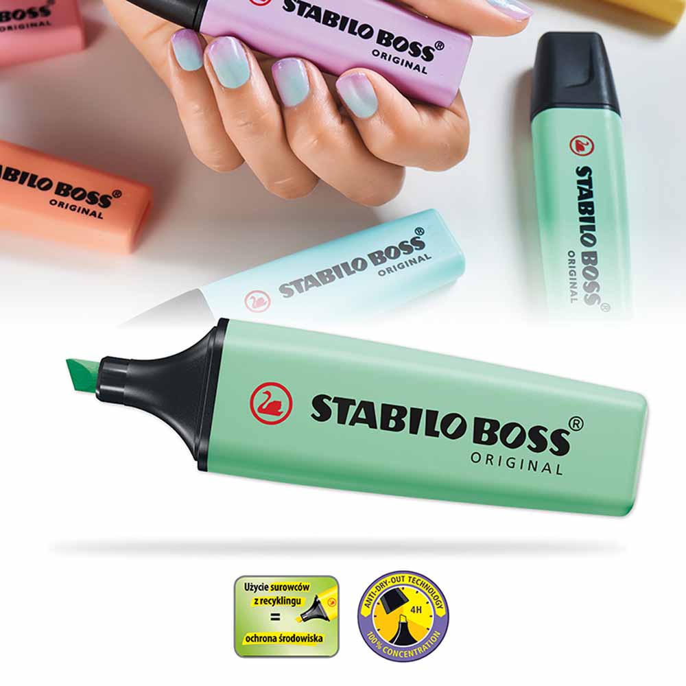 Praktyczna skuwka z klipsem pozwala na łatwe przypięcie zakreślacza do notesu czy kieszeni, zapewniając wygodę użytkowania. Obudowa zakreślacza jest neutralna dla środowiska, wykonana z materiałów, które nie szkodzą naszej planecie.