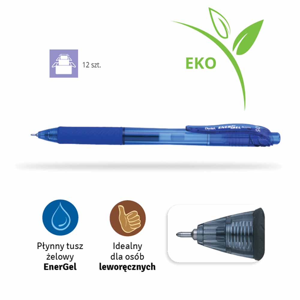 Cienkopis kulkowy Pentel EnerGel BLN15 jest wykonany w 54% z materiałów przetworzonych, co czyni go ekologicznym wyborem dla każdego, kto dba o środowisko.