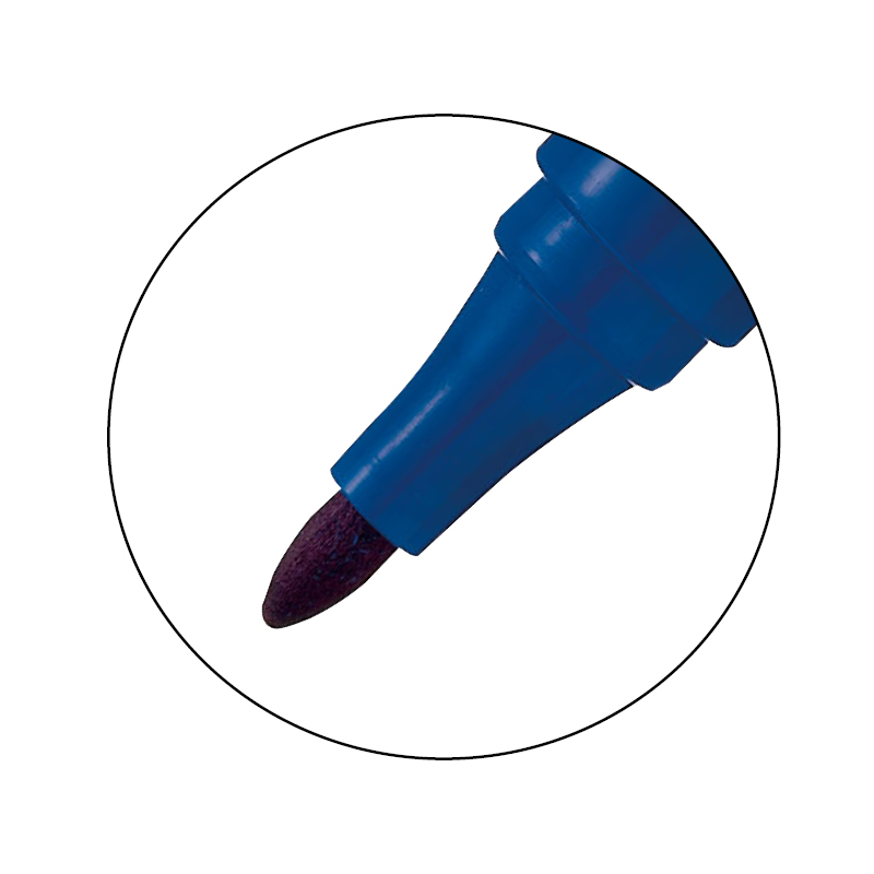 Marker Pentel N850 jest wyposażony w okrągłą końcówkę z włókna akrylowego, która zapewnia precyzyjne i równomierne pisanie. Grubość linii pisania wynosi 1,5 mm, co pozwala na dokładne i czytelne oznaczenia.