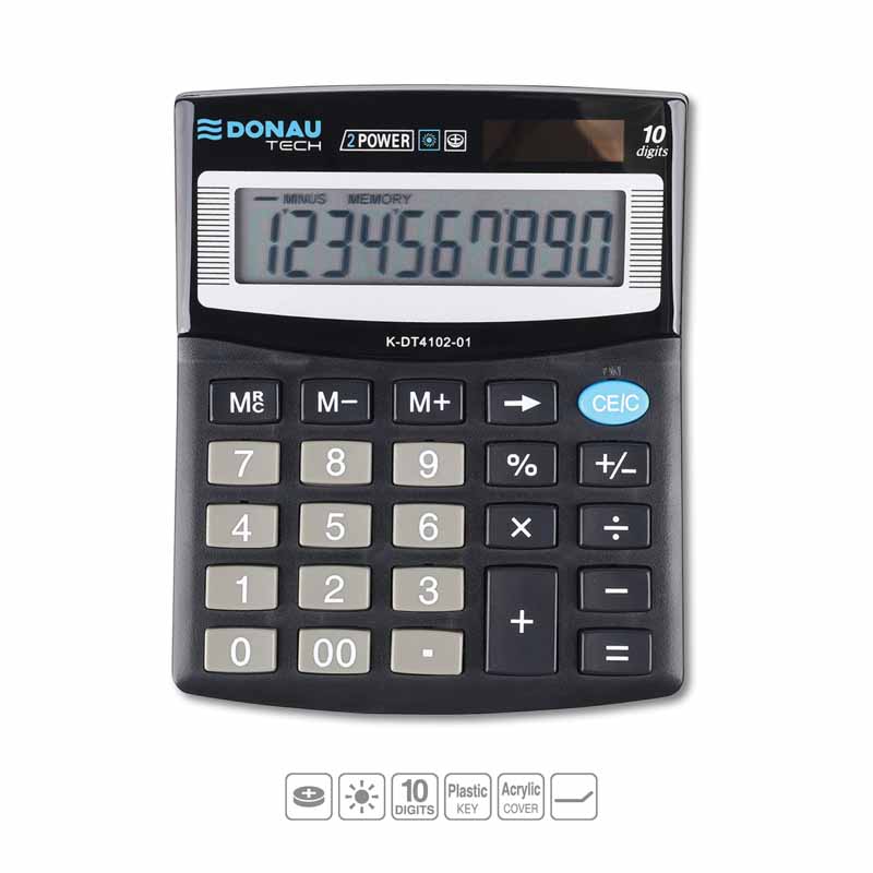 Kalkulator DONAU TECH dostępny jest w eleganckim czarnym kolorze, który doskonale komponuje się z każdym stylem. Jest to idealny wybór zarówno do biura, jak i do użytku prywatnego, dodając odrobinę klasy Twoim codziennym zadaniom.