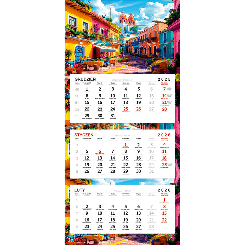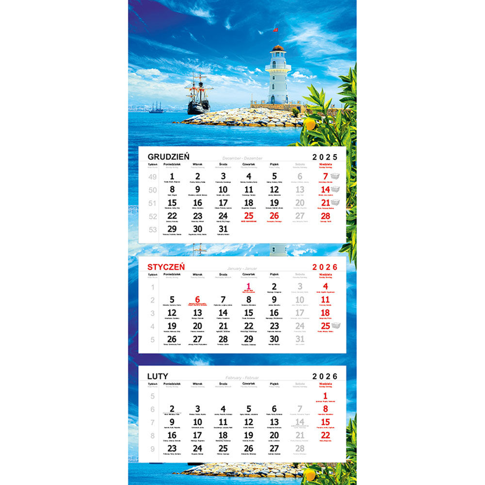 - 3-języczne kalendarium (zaznaczone święta państwowe i kościelne)