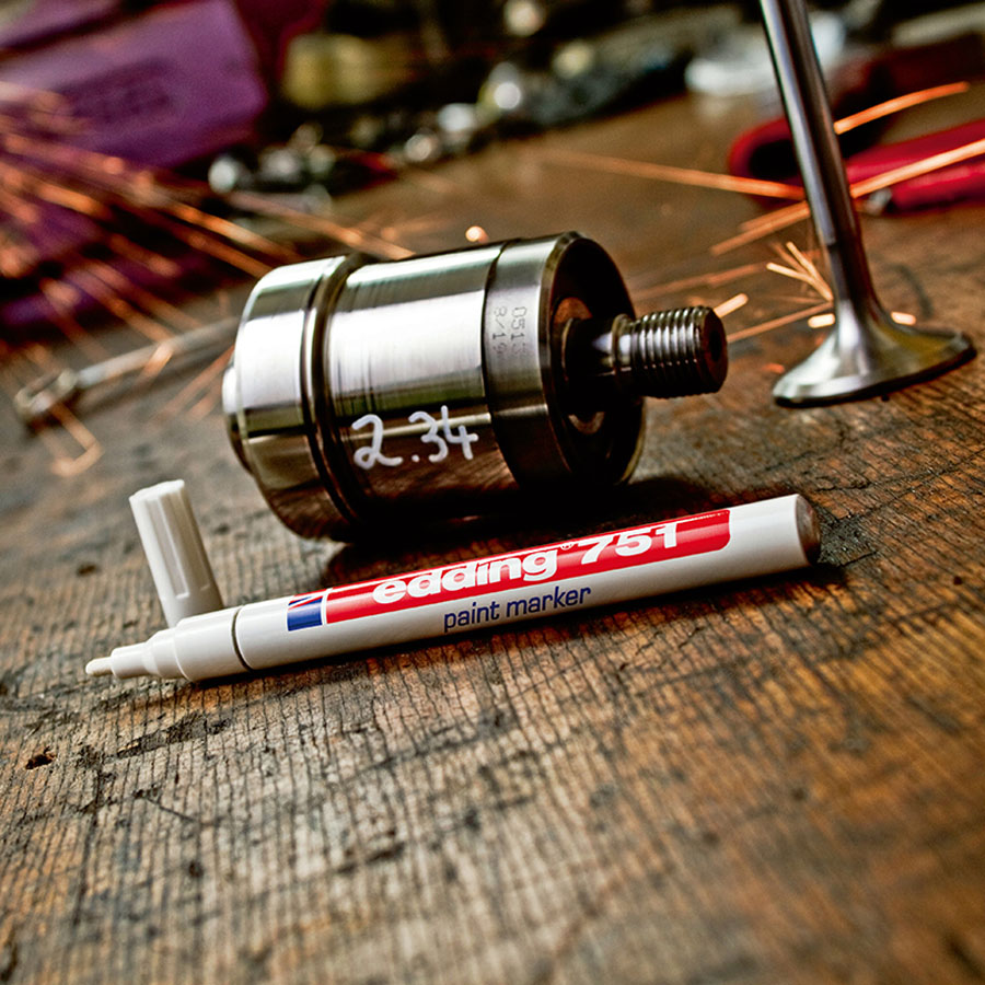 - trwały tusz o słabym zapachu i kryciu zbliżonym do lakieru jest wysoce odporny na ścieranie, działanie światła i temperatury (widoczny do 400 stopni C, kolory biały i żółty - nawet do 1000 stopni C)