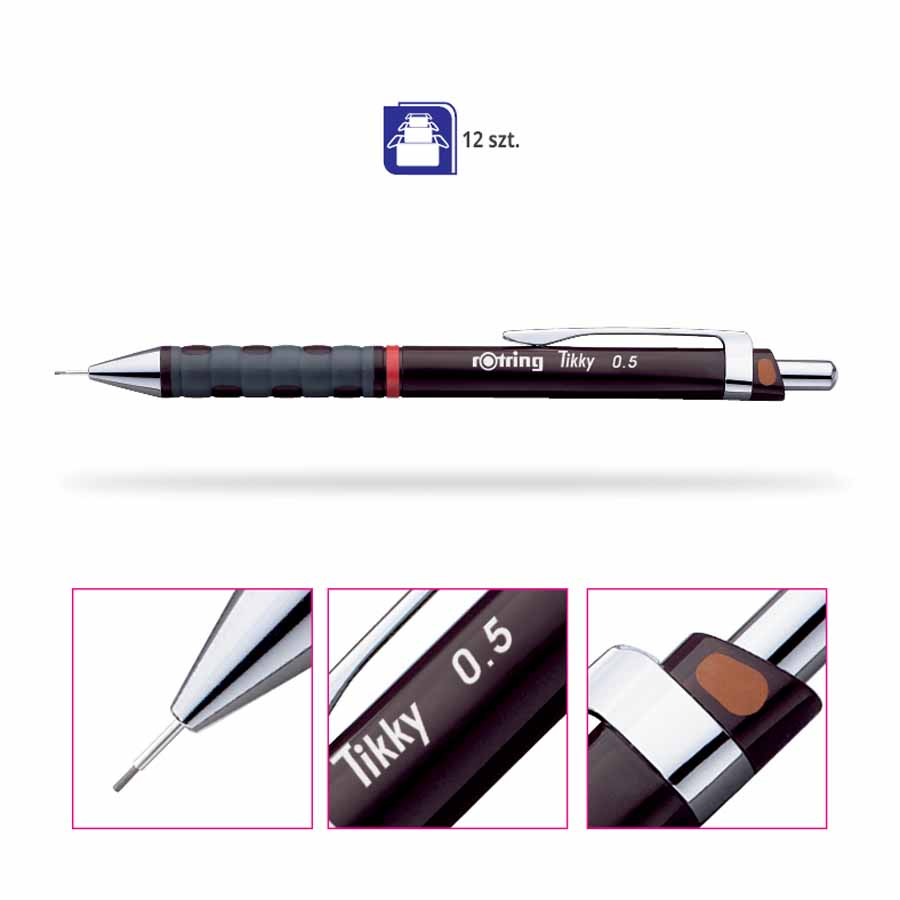 Metalowy klips umożliwia łatwe przypięcie ołówka do notesu, kieszeni czy teczki. Jest to praktyczne rozwiązanie, które pozwala mieć ołówek zawsze przy sobie, gotowy do użycia w każdej chwili.