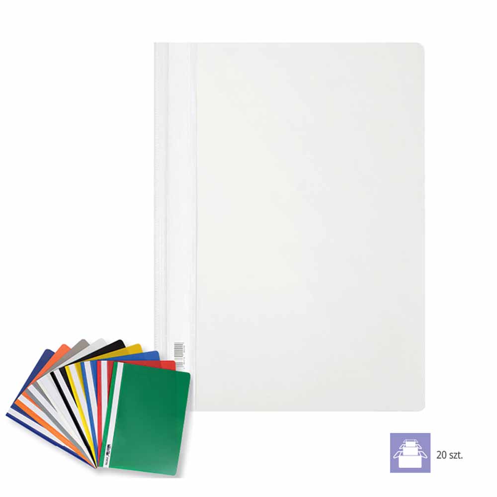 Boczna perforacja pozwala na łatwe wpięcie skoroszytu do segregatora z dowolnym mechanizmem, co zwiększa możliwości organizacji i archiwizacji dokumentów. Wewnętrzna blaszka i wąs o długości 14,5 cm umożliwiają bezpieczne przechowywanie dokumentów o grubości do 20 mm.