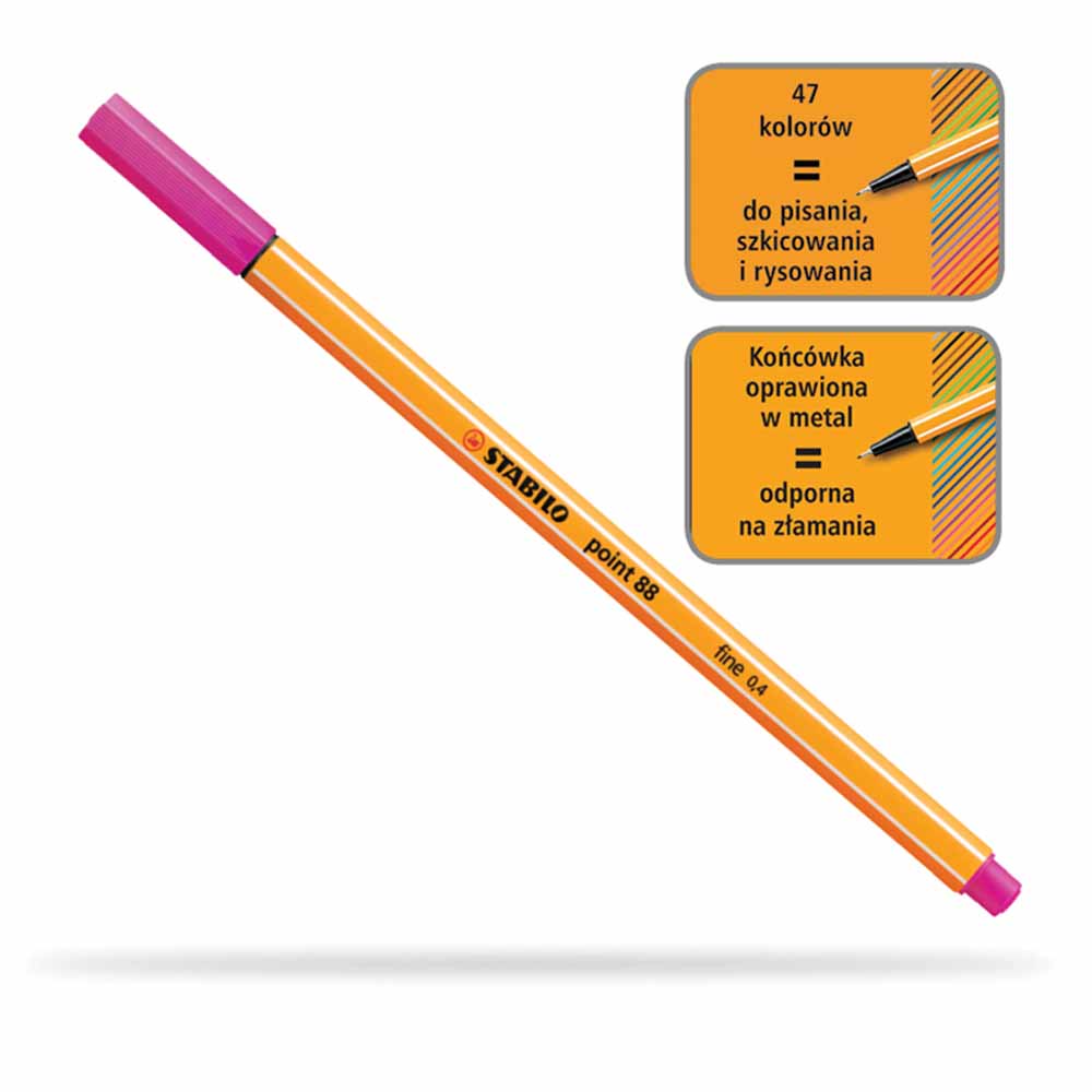 Elementy obudowy cienkopisu są w kolorze tuszu, co ułatwia jego identyfikację. Tusz na bazie wody jest bezpieczny i ekologiczny, zapewniając jednocześnie intensywne i trwałe kolory.