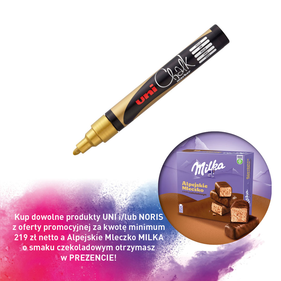jm.: szt Kup dowolne produkty UNI i/lub NORIS z oferty promocyjnej za kwotę minimum 219 zł netto a Alpejskie Mleczko MILKA o smaku czekoladowym otrzymasz w PREZENCIE!