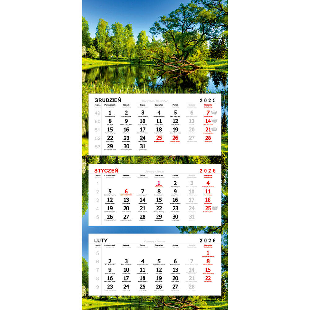 - 3-języczne kalendarium (zaznaczone święta państwowe i kościelne)