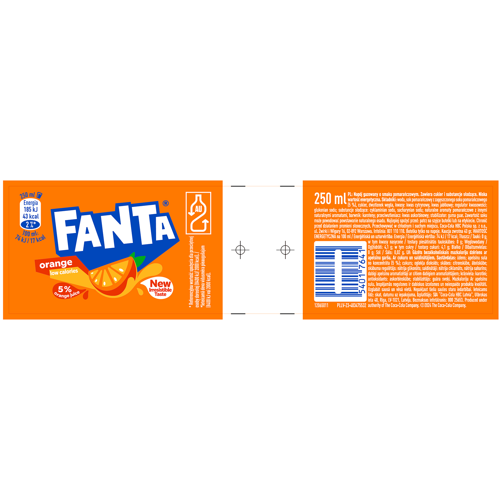 - skład: woda, cukier, sok pomarańczowy (5%) z soku zagęszczonego, dwutlenek węgla, naturalny aromat pomarańczowy z innymi naturalnymi aromatami, kwas: kwas cytrynowy, przeciwutleniacz: kwas askorbinowy, stabilizator: guma guar, barwnik: karoteny