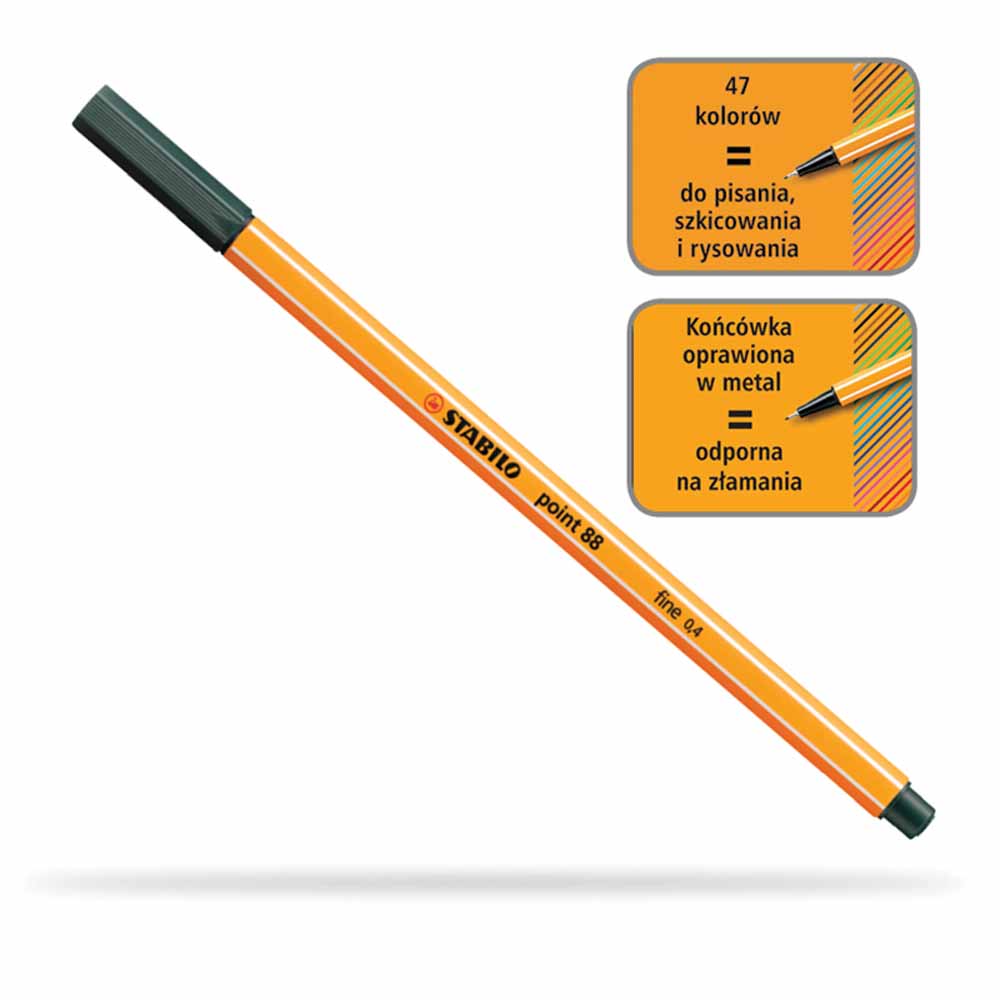Cienkopis STABILO point 88 to legenda wśród cienkopisów, ciesząca się niesłabnącą popularnością od 1977 roku. W każdej sekundzie sprzedają się 4 cienkopisy point 88 w Europie, co świadczy o jego niezrównanej jakości i zaufaniu użytkowników.
